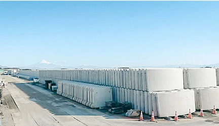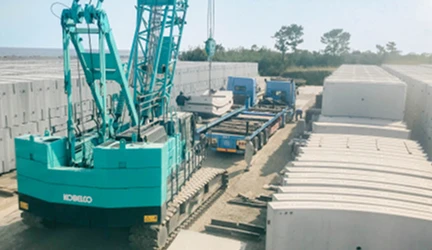 RCセグメントや建設機材などの重量物を、自社の広大な敷地で安全・適切に保管します。お客様の大切な財産を、出荷の瞬間まで責任を持って管理いたします。